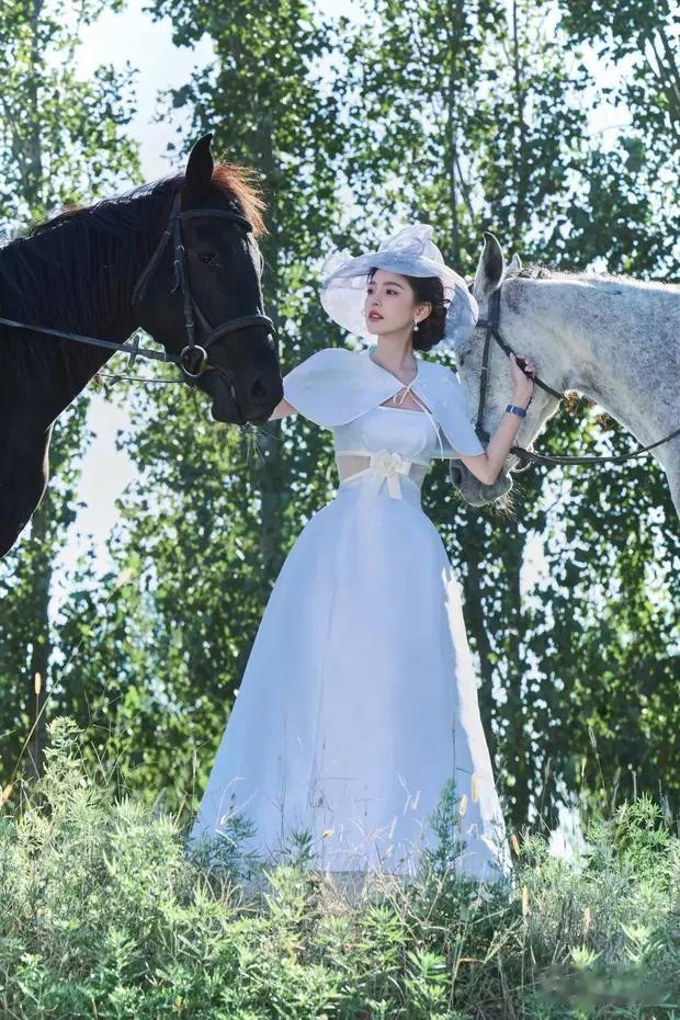 近日,章若楠一组民国千金造型写真在社交平台引发热议。照片中,她身着一袭白色长裙,化身从旧时光里走出的大家闺秀,既有江南女子的温婉灵动,又不失将门千金的飒爽英气。尤其是骑马时露腰转身的瞬间,纤细腰肢与优越下颌线形成极致反差,被网友盛赞 "甜而不腻的民国美学教科书"。