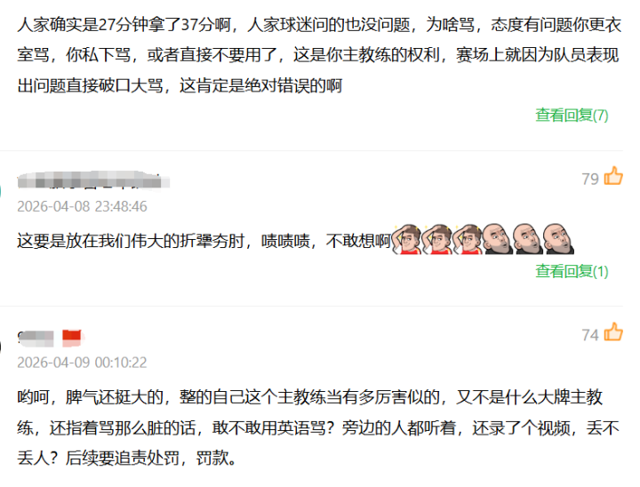 赛后不光是山东球迷不满,广东、上海、北京等各地的球迷也都非常不满,纷纷在评论区声讨刘维伟:脾气还挺大的,整的自己这个主教练当有多厉害似的,又不是什么大牌主教练,还指着骂那么脏的话,敢不敢用英语骂?