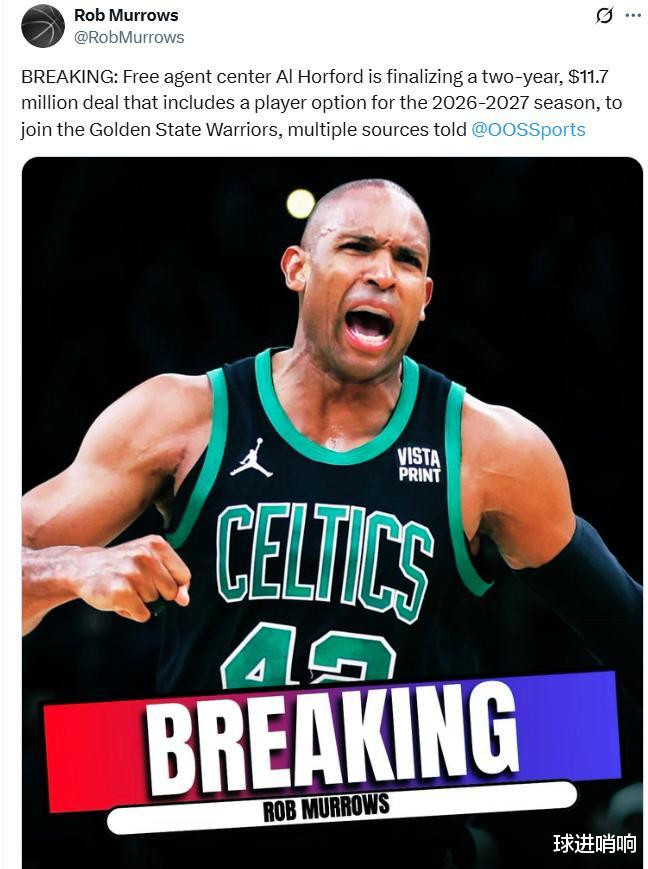 根据美记Rob Murrows报道,多个消息源向其确认,自由球员霍福德同意与勇士队签下一份2年价值1170万美元的合约,合同第二年为球员选项。