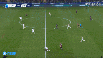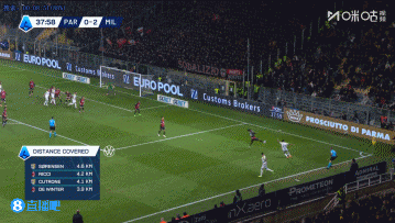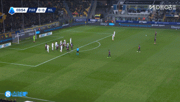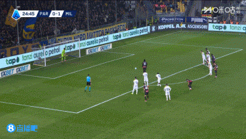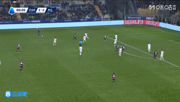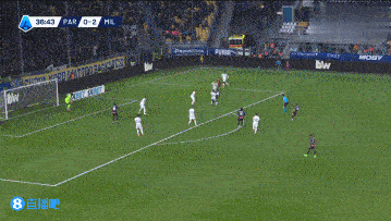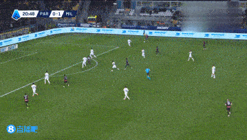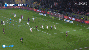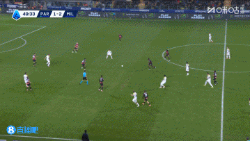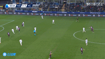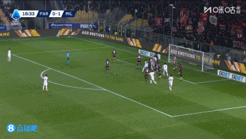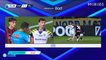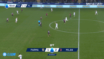 上半场伤停补时4分钟,半场结束,AC米兰暂2-1帕尔马。