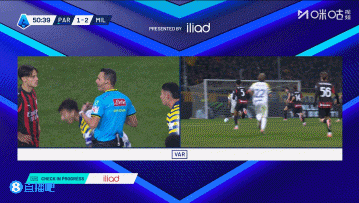 易边再战,第50分钟,库特罗内突入禁区横传门前,佩莱格里诺抢点攻门被埃斯图皮尼安干扰没能成功,帕尔马球员投诉米兰有手球,VAR介入,主裁判认为没有点球。↓
