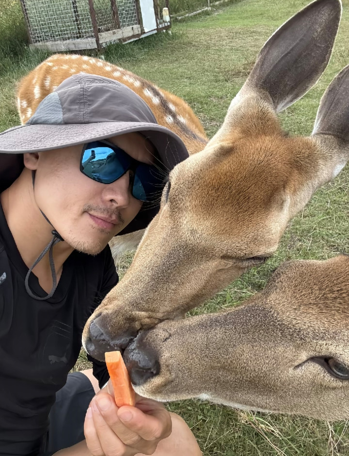 这后面还带着一个生气的表情包,图片倒是挺正常的,就是他在喂食小鹿胡萝卜。