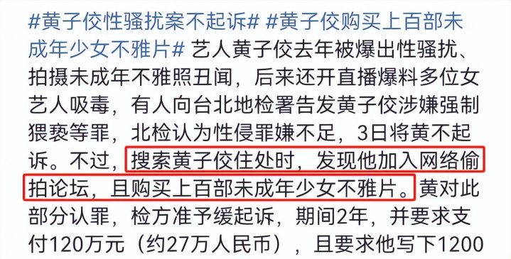 北院认定,黄子佼购买、持有达2259部未成年性影像片,但仅35人身份得以辨识,一审判处8月,不得易科罚金,另将12名身份不明的被害人退回北检。